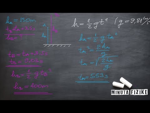 Postupno rješenje zadatka: Dva tijela su istovremeno puštena da slobodno padaju. Prvo tijelo je pušteno da pada sa visine 150 m, i padne 3.5 sekunde ranije nego drugo tijelo. Sa koje visine je pušteno drugo tijelo?